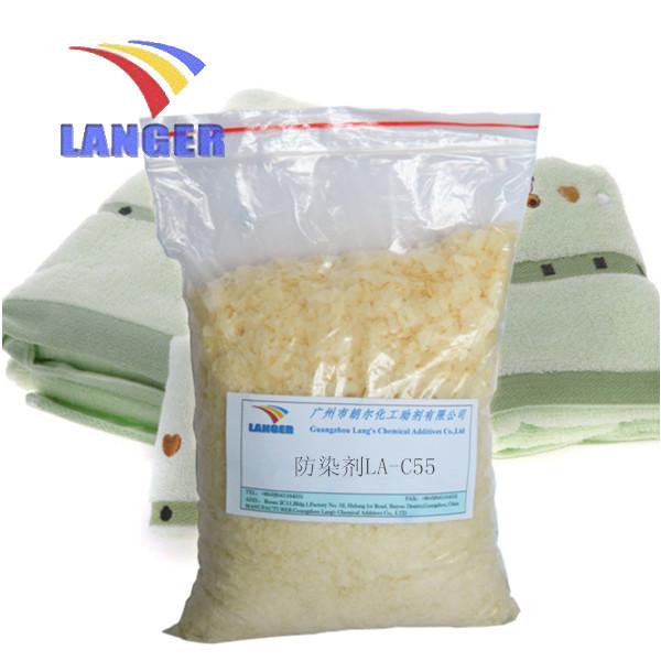 LA-C55防染剂是一种具有突出效果的防止染料返染助剂,用于纤维素酶配方内控制防染,特别是口袋布的沾染。也可以在酵素后整理时加入,不影响酵素的活性。