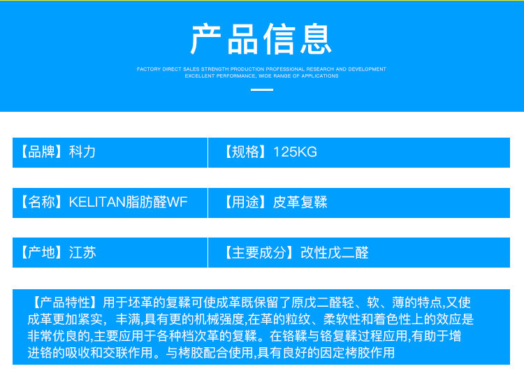 泰州科力生物科技有限公司 KELITAN脂肪醛WF 复鞣