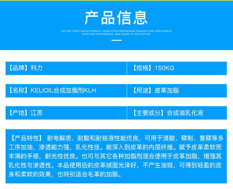 泰州科力生物科技有限公司 KELIOIL合成加脂剂KLH