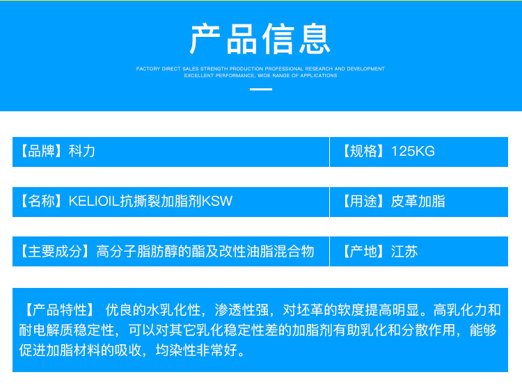 泰州科力生物科技有限公司 KELIOIL抗撕裂加脂剂KSW