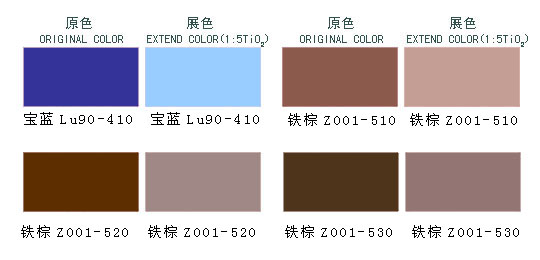 型 号 | 含 量 | 色 差 | 着 色 力 | 水 溶 物 | 筛余物 325目 (45μm) | PH 值 | 吸 油 量 | 105℃ 挥发物 | 1000℃ 0.5h 热损失 |