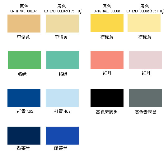易分散产品颜料;超微细氧化铁系颜料、氧化铬绿;柠檬黄;中铬黄;立德粉B301、B311、氧化锌、群青462