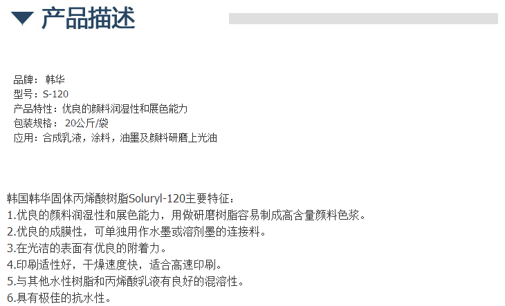 韩国韩华固体丙烯酸树脂Soluryl-120