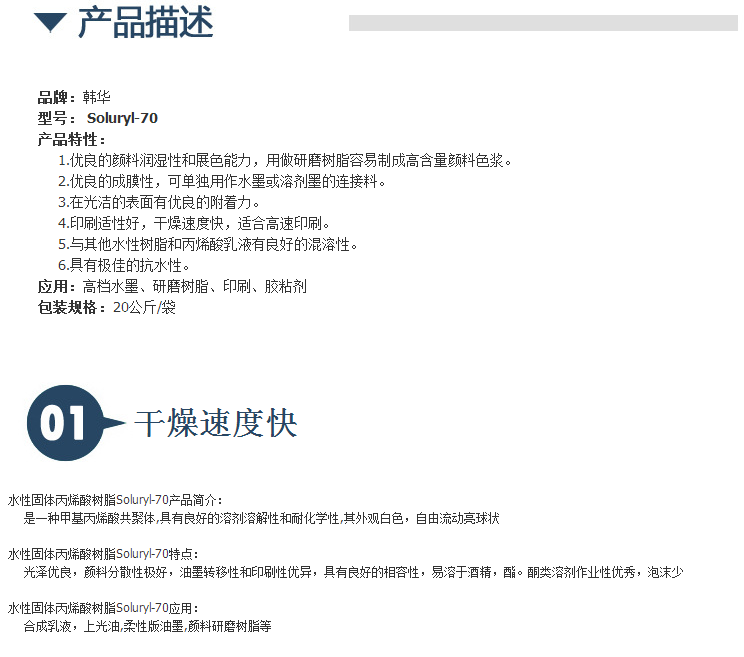 原装进*口 韩国韩华固体丙烯酸树脂Soluryl-70