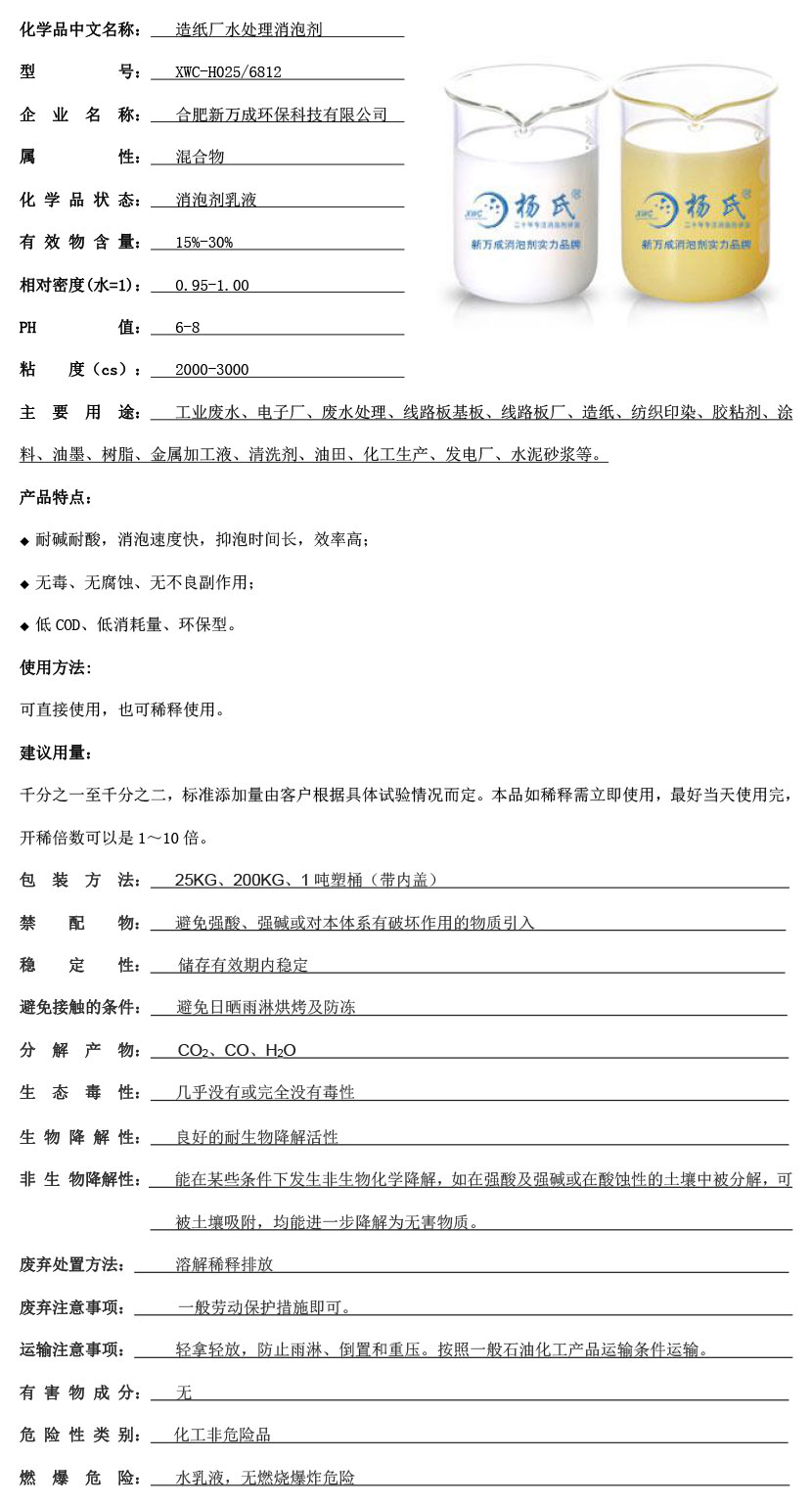 合肥新万成环保科技 水处理消泡剂 造纸厂水处理消泡剂