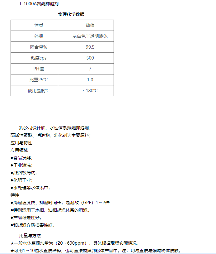 江苏腾达助剂 机械及汽车工业 T-1000A聚醚抑泡剂
