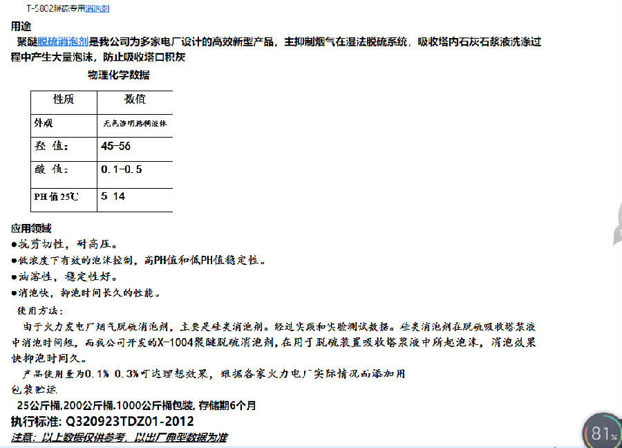 江苏腾达助剂 发电厂脱硫消泡剂 T-5802脱硫专用消泡剂