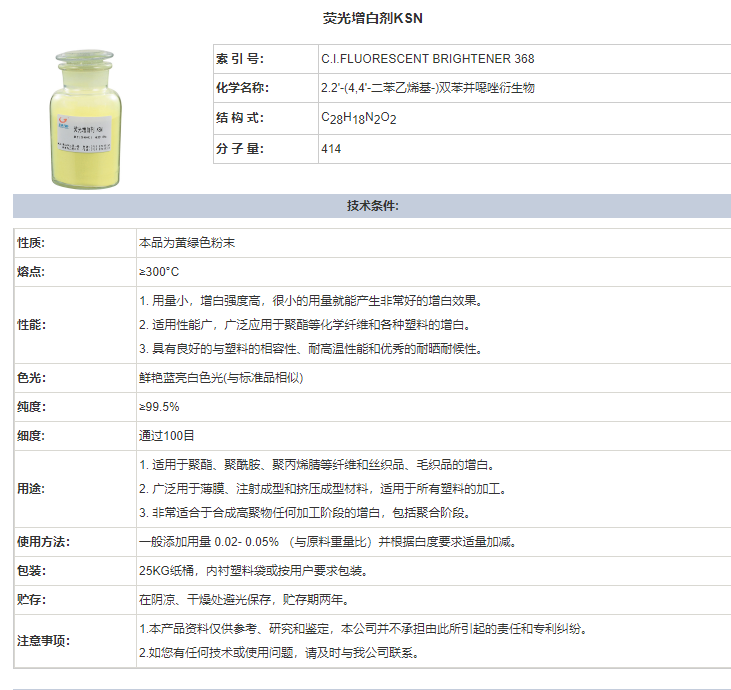 佛山市宏达丹特化工 塑料增白剂 荧光增白剂KSN
