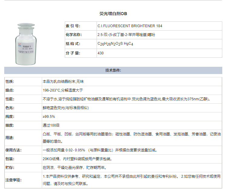佛山市宏达丹特化工 油墨增白剂 荧光增白剂OB