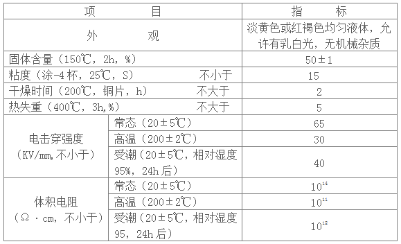 本品具有优异的耐高温、电气绝缘和防潮性能,适用于H级电机、变压器线圈、晶体管密封、H级玻璃丝电线浸滞以及耐高温涂料等。