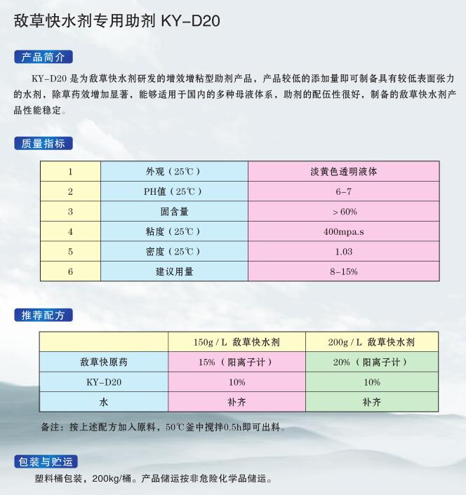 江苏凯元科技 特种专用助剂 敌草快水剂专用助剂KY-D20