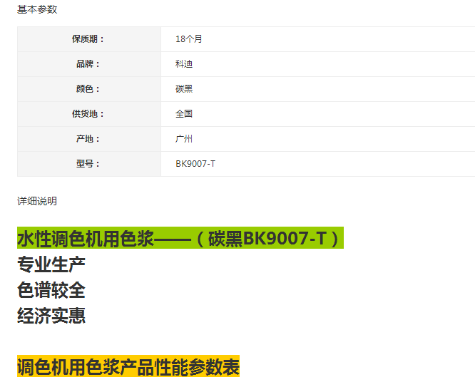 科迪色浆 水性调色机用色浆 乳胶色浆 水彩色浆-碳黑