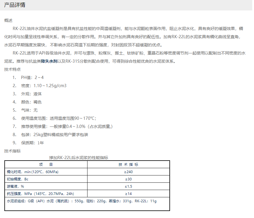 潍坊锐科助剂 RK系列油井水泥缓凝剂 RK-22L油井水泥抗盐缓凝剂