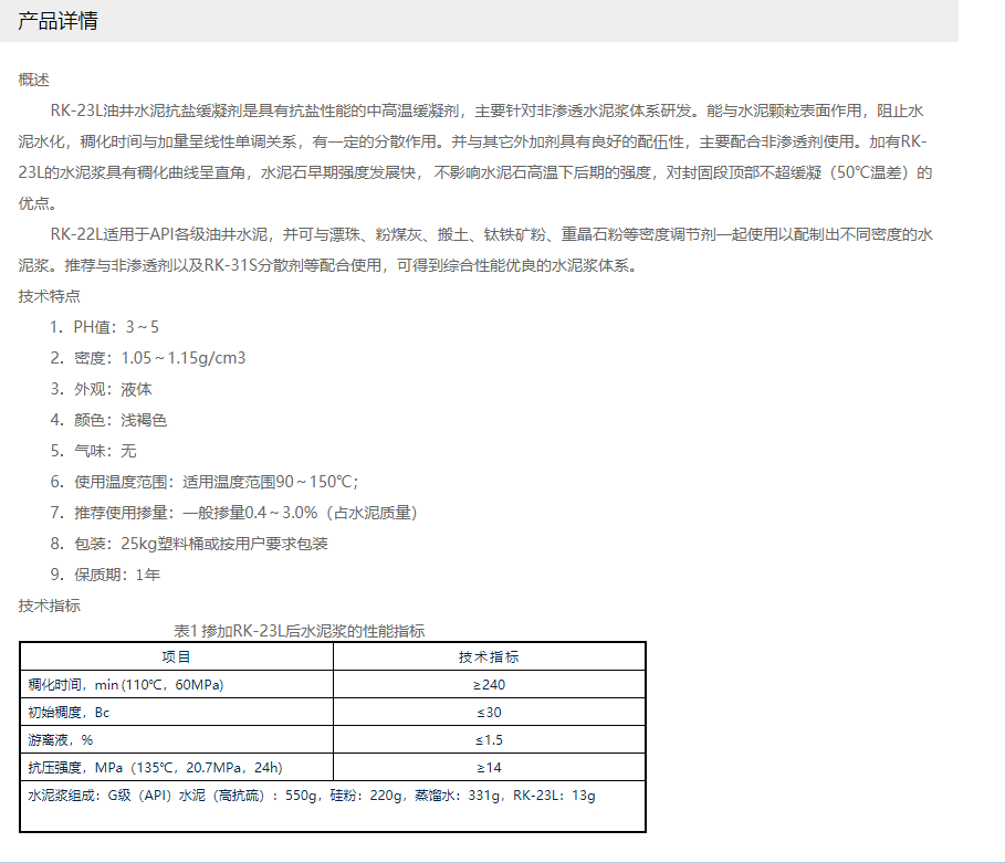 潍坊锐科助剂 RK系列油井水泥缓凝剂 RK-23L油井水泥抗盐缓凝剂