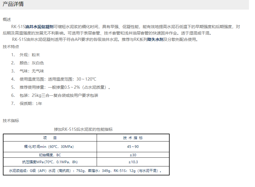 潍坊锐科助剂 RK系列油井水泥促凝剂 RK-51S油井水泥促凝剂