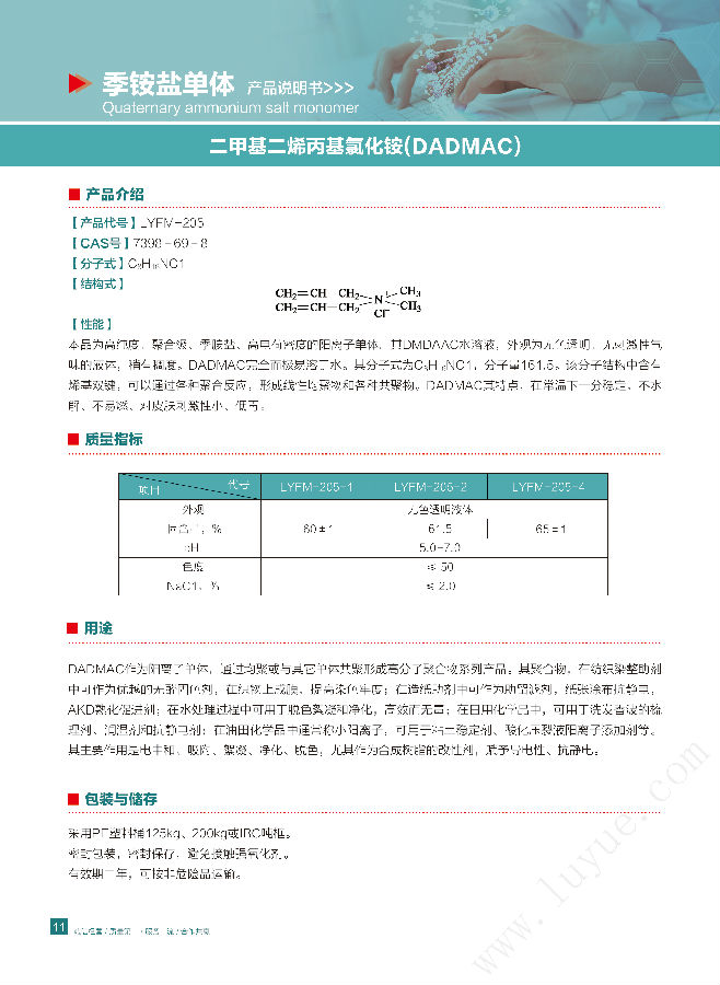 山东鲁岳化工 季铵盐单体 二甲基二烯丙基氯化铵