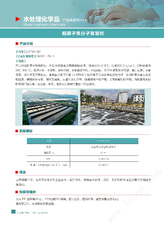 山东鲁岳化工 水处理化学品 阳离子高分子絮凝剂
