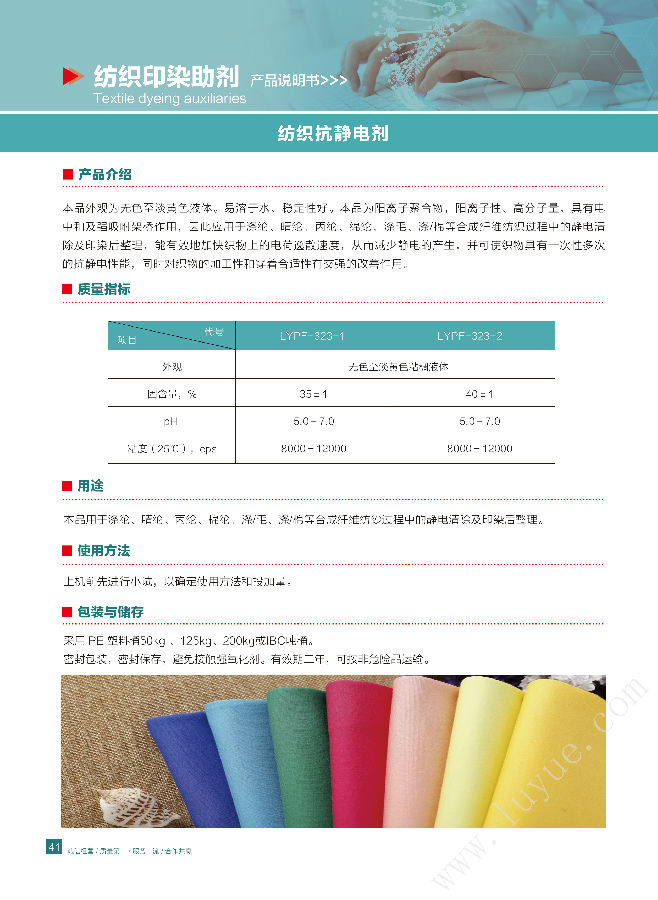 山东鲁岳化工 纺织印染助剂 纺织抗静电剂