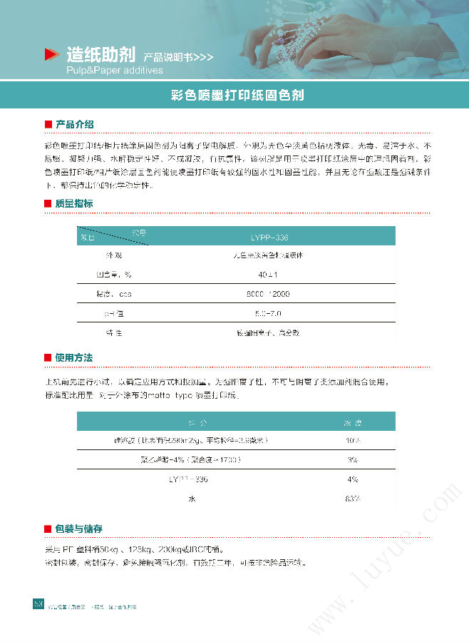 山东鲁岳化工 造纸助剂 彩色喷墨打印纸固色剂
