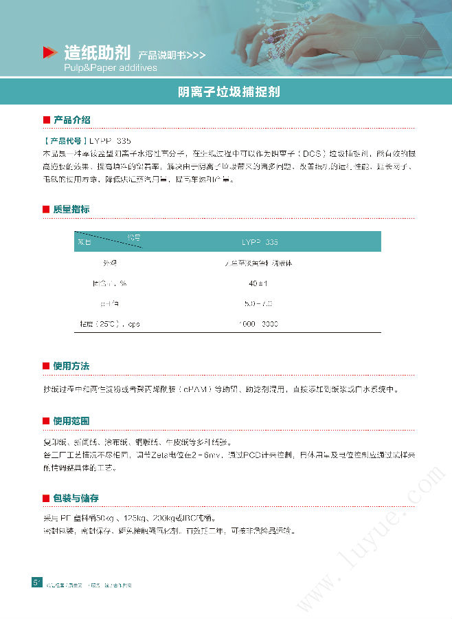 山东鲁岳化工 造纸助剂 阴离子垃圾捕捉剂