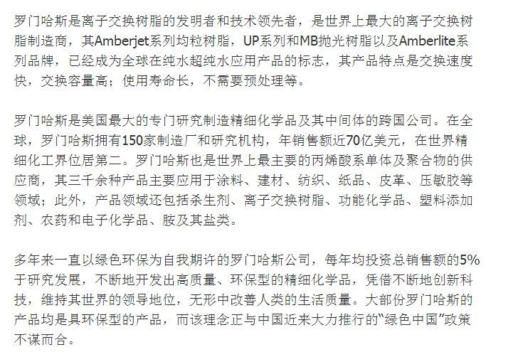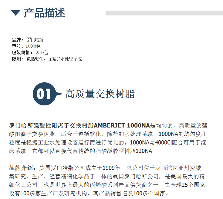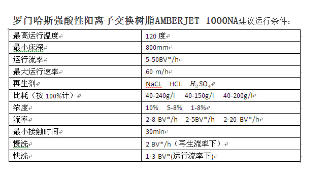 罗门哈斯离子交换树脂AMBERJET 1000NA