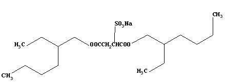 - 化学名称:顺丁烯二酸二异辛酯磺酸盐(磺化琥珀酸二辛酯钠盐)