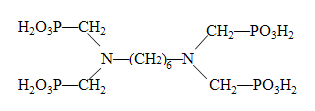 - 别名: 1,6-己二胺四甲叉膦酸 、 己二胺四亚甲基膦酸 、 六亚甲基二胺四亚甲基膦酸 、 HMDTMP