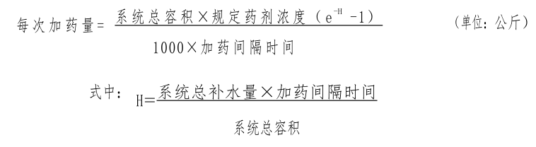 (1)连续排污连续加药:这种加药方式可保证冷却水中药剂浓度稳定,波动范围小。建议采用连续加药方式,其计算方法如下: