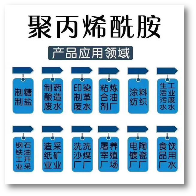 1.污泥脱水剂:城市与工业污水常用于活化污泥法处理,生活污泥常常是亲水性很强的液体,有机含量高,极难脱水。用阳离子聚丙烯酰胺处理,用星少、脱水效率高、易水分离。