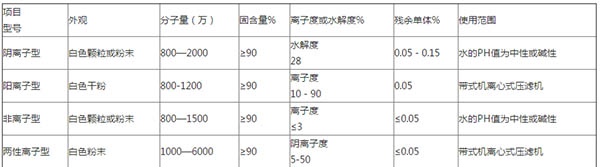 根据需要,聚丙烯酰胺可以由非离子型加工成阴离子、阳离子和阴、阳混合离子而形成四种类型产品。