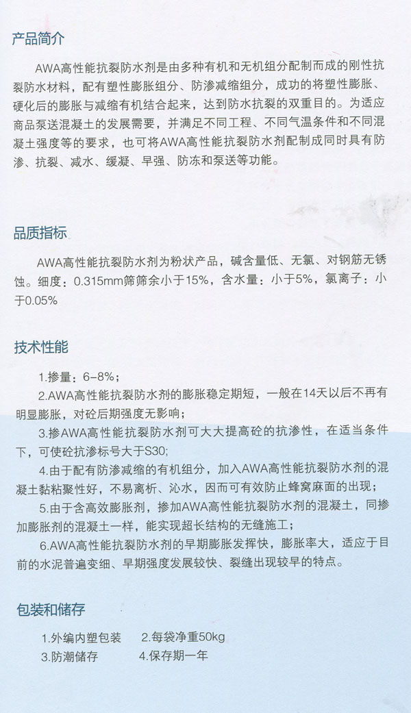 河南聚能合众特种材料 AWA高性能抗裂防水剂