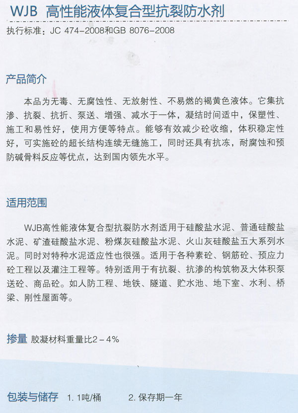 河南聚能合众特种材料 WJB 高性能液体复合型抗裂防水剂