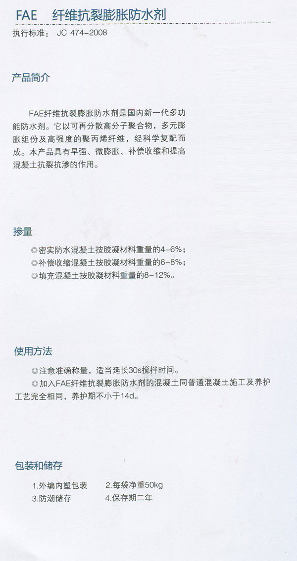 河南聚能合众特种材料 FAE纤维抗裂膨胀防水剂