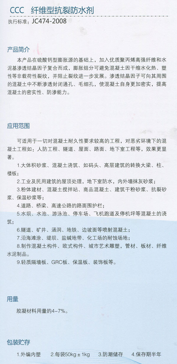 河南聚能合众特种材料 CCC 纤维型抗裂防水剂