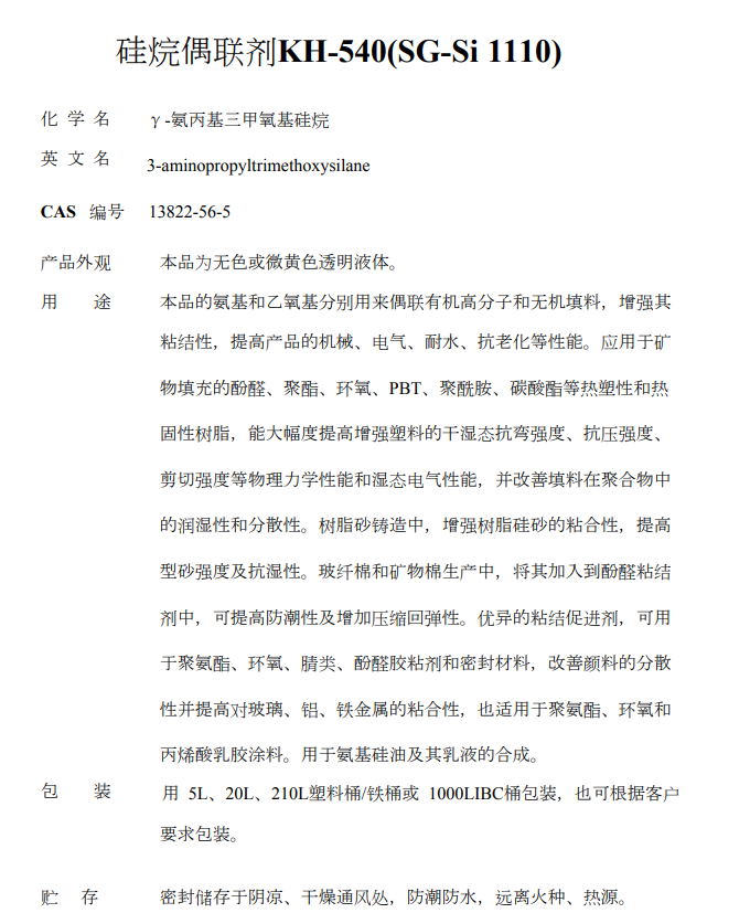 南京曙光化工厂 硅烷偶联剂 硅烷偶联剂KH-540(SG-Si 1110)