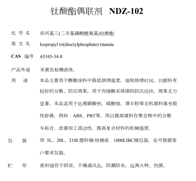 南京曙光化工厂 钛酸酯偶联剂 钛酸酯偶联剂 NDZ-102
