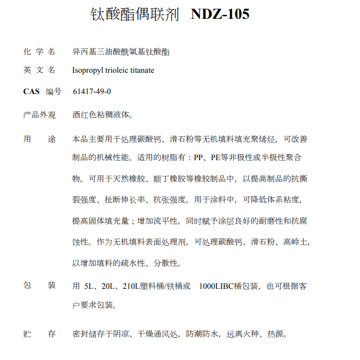 南京曙光化工厂 钛酸酯偶联剂 钛酸酯偶联剂 NDZ-105