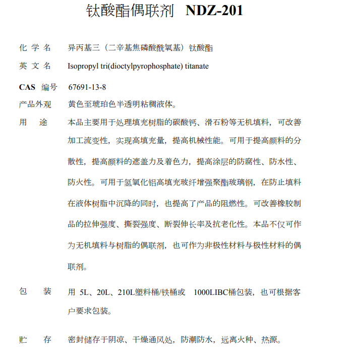 南京曙光化工厂 钛酸酯偶联剂 钛酸酯偶联剂 NDZ-201