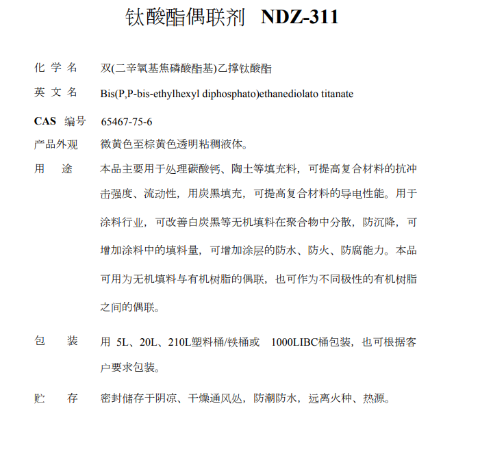 南京曙光化工厂 钛酸酯偶联剂 钛酸酯偶联剂 NDZ-311