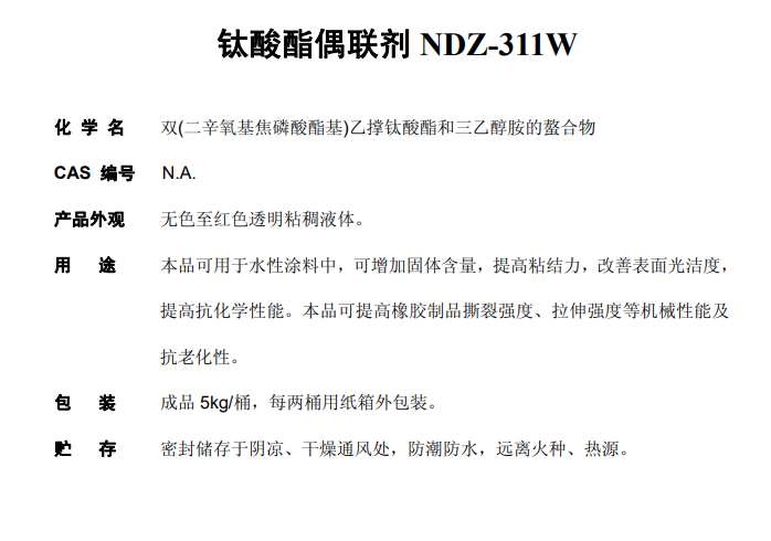 南京曙光化工厂 钛酸酯偶联剂 钛酸酯偶联剂 NDZ-311W