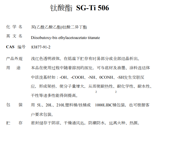 南京曙光化工厂 钛酸酯偶联剂 钛酸酯 SG-Ti 506