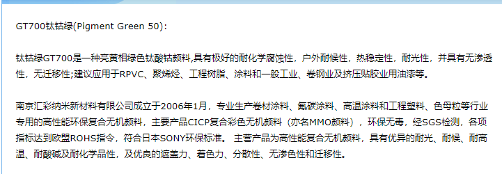 南京汇彩纳米新材料 无机颜料 钛钴绿 PG50