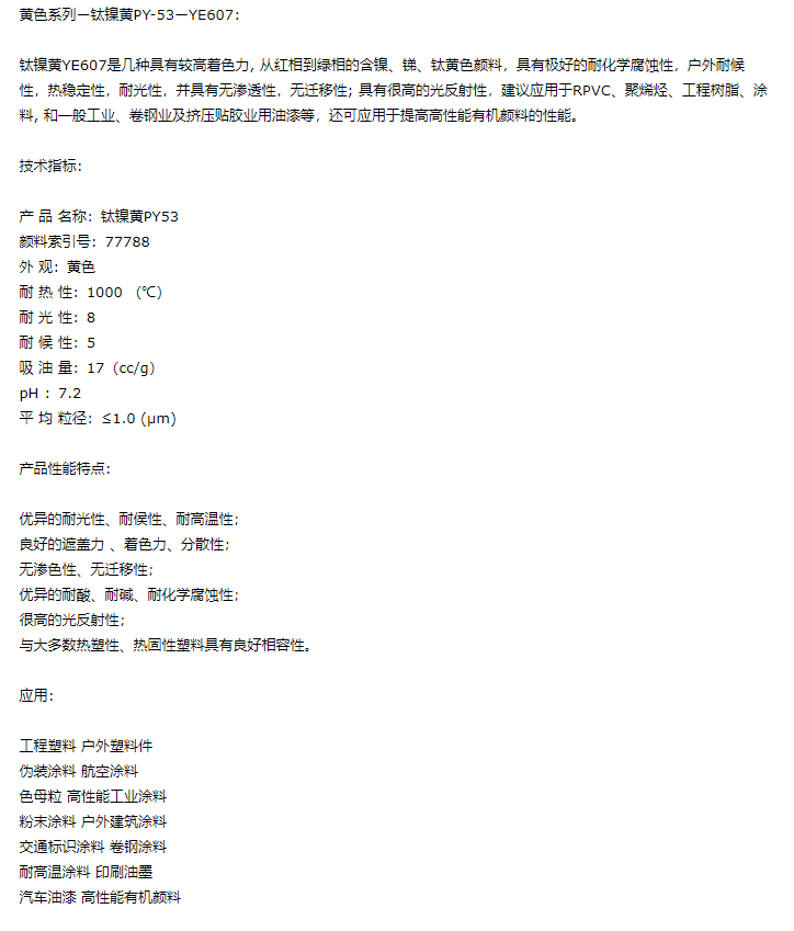 南京汇彩纳米新材料 无机颜料 钛镍黄PY53-YE607
