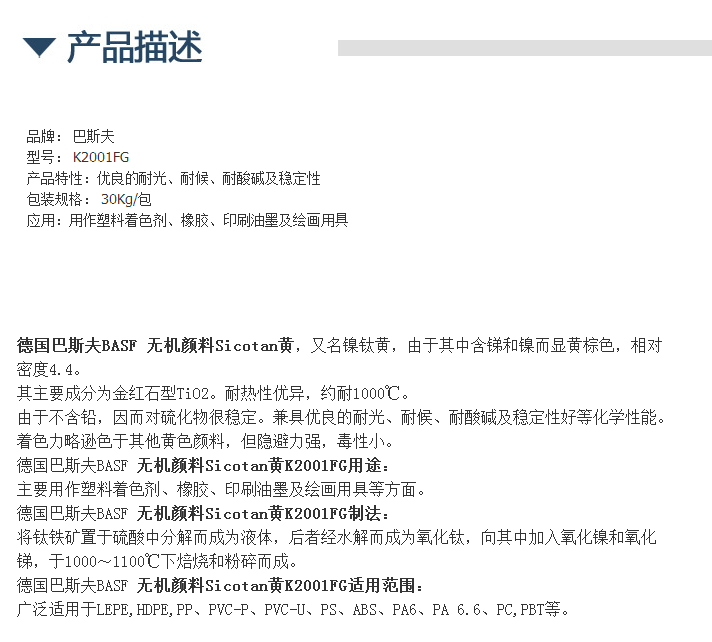 德国巴斯夫(BASF) (汽巴)无机颜料Sicotan黄K2001FG