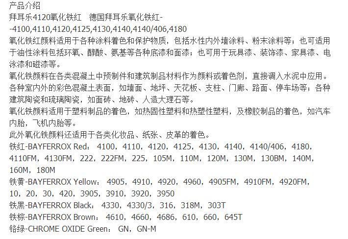 德国朗盛拜耳乐无机颜料氧化铁红4120 BAYFERROX Red