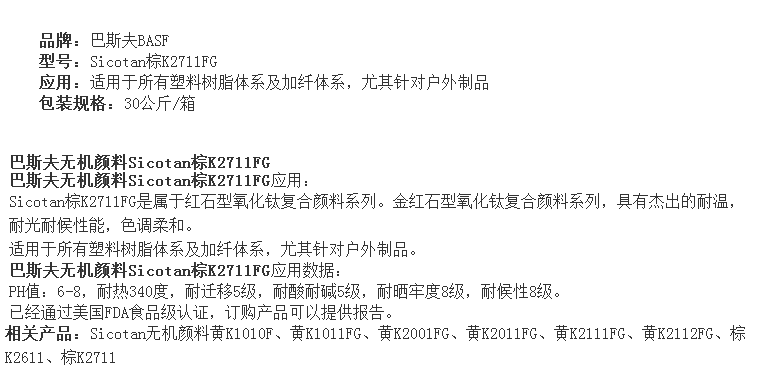 德国巴斯夫(BASF)(汽巴)无机颜料Sicotan棕K2711FG