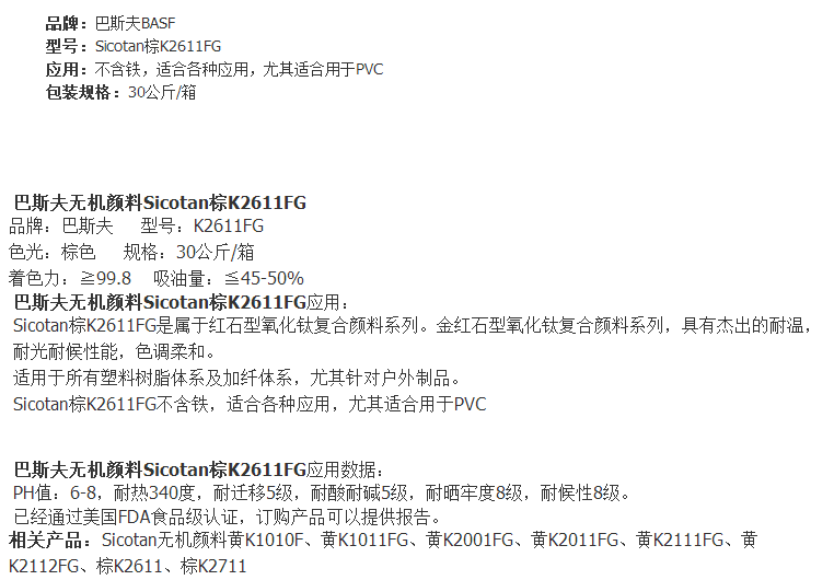 德国巴斯夫BASF无机颜料Sicotan棕K2611FG