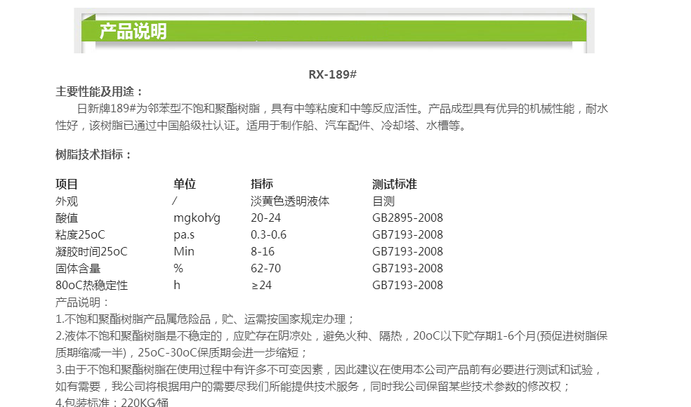 日新RX-189#耐腐蚀不饱和树脂 邻苯型不饱和聚酯树脂