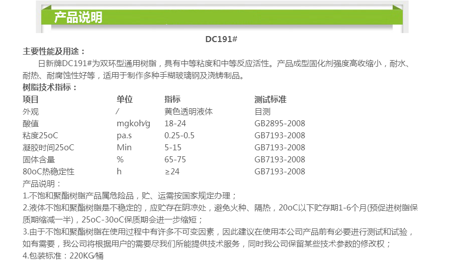 日新手糊玻璃钢树脂191# 耐腐不饱和聚酯树脂DC191