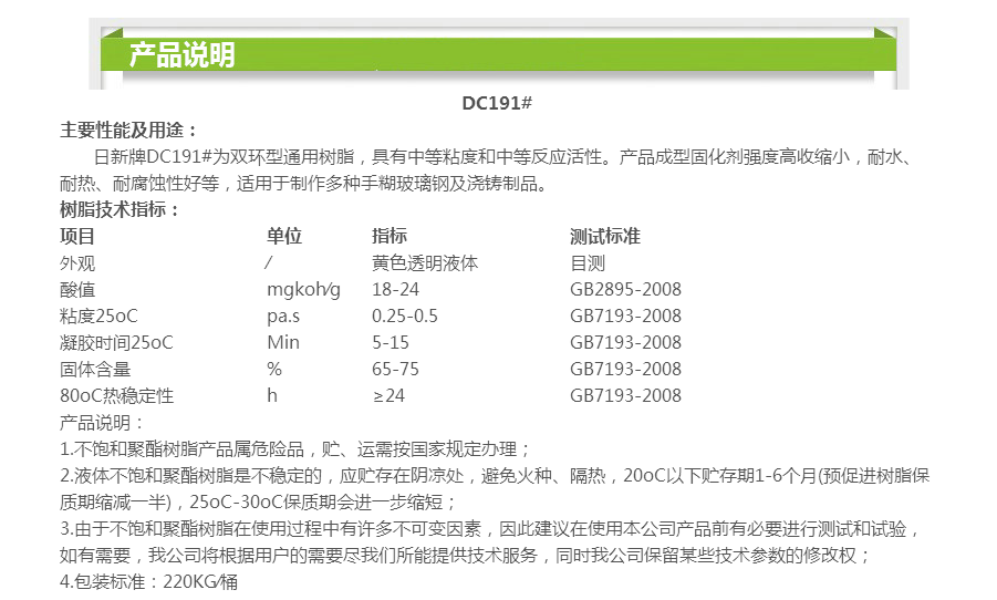 日新 玻璃钢树脂191# 耐酸碱不饱和聚酯树脂191